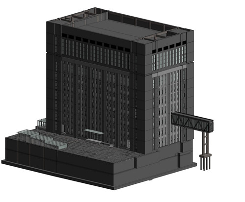 新建*鐵路局新建調(diào)度所??偨ㄖ娣e22965m2,其中地下建筑面積7282m2,地上建筑面積15683m2,建筑基底面積1847m2。地下二層,地上八層,建筑高度50m。